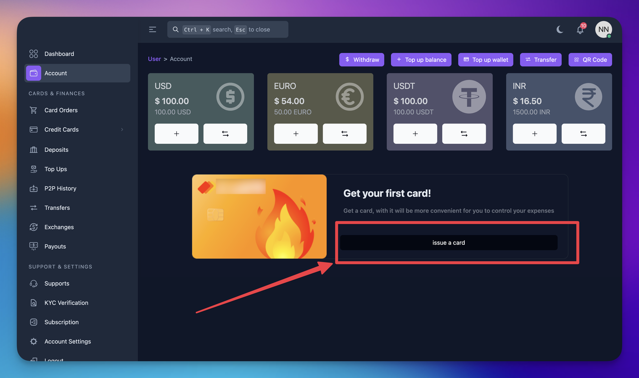 - After successfully make payment the user will redirect to Card orders page he can view the status of issue card verification status
